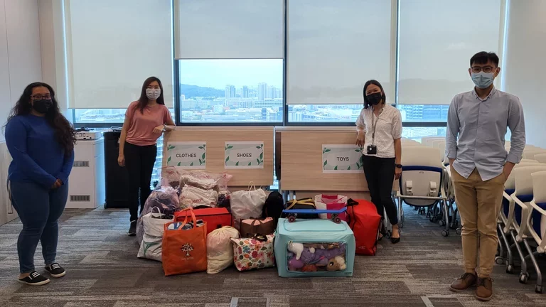 (Picture caption: Our CARE Ambassadors with the donated items from our colleagues in Air Liquide in Singapore.)