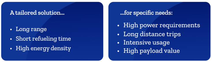 Hydrogen is well positioned as a solution to decarbonize intensive mobility (public and freight transport) because it answers unavoidable criterias for decision makers: weight, space and cost amongst others. With larger vehicles or used more intensively, hydrogen can offer the best of all worlds: a short refueling time for a long range autonomy.
